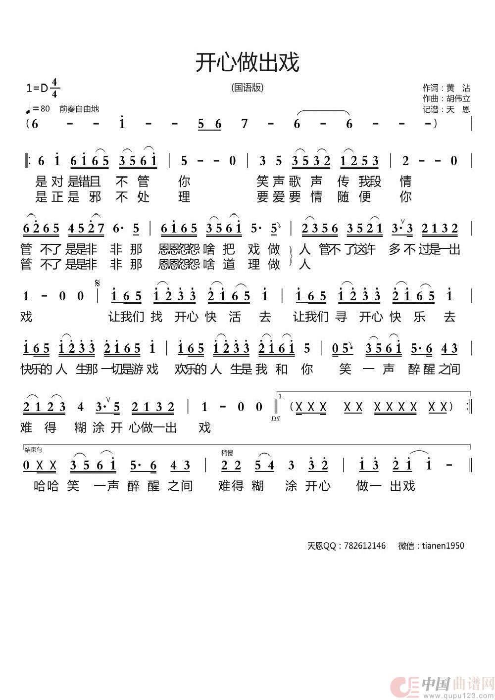 关于《开心做出戏 (国语版)》曲谱的评论