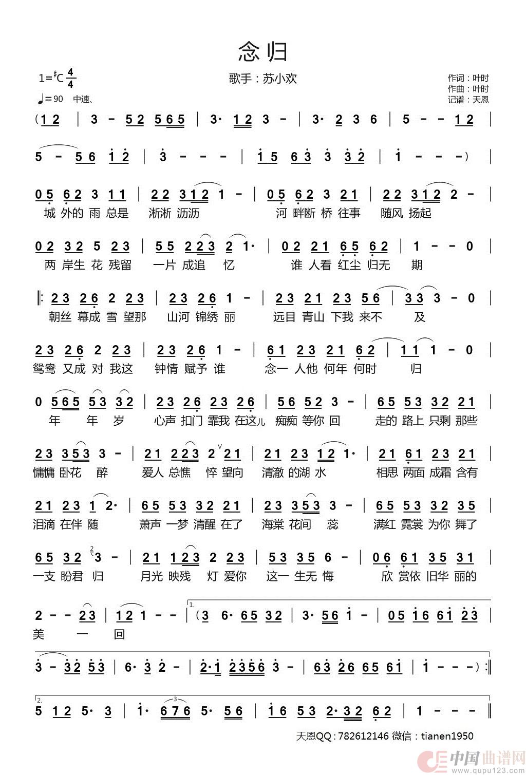 作词:叶时 作曲:叶时 演唱(奏):苏小欢 来源:谱友天恩上传 上传:天恩