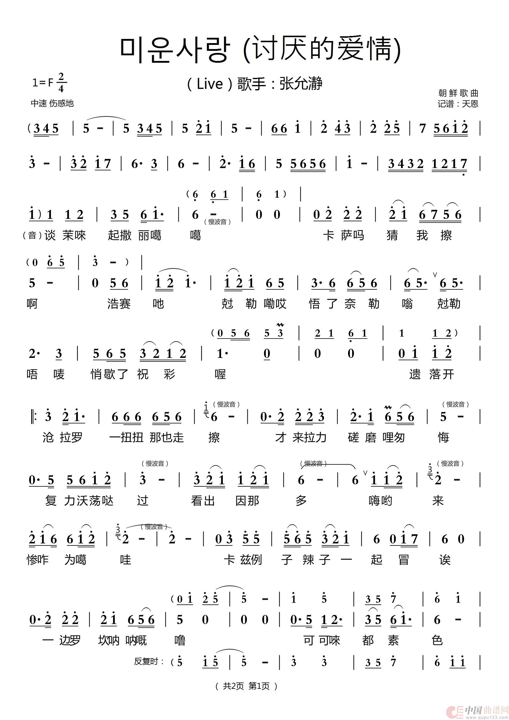关于《讨厌的爱情(韩语歌曲)》曲谱的评论