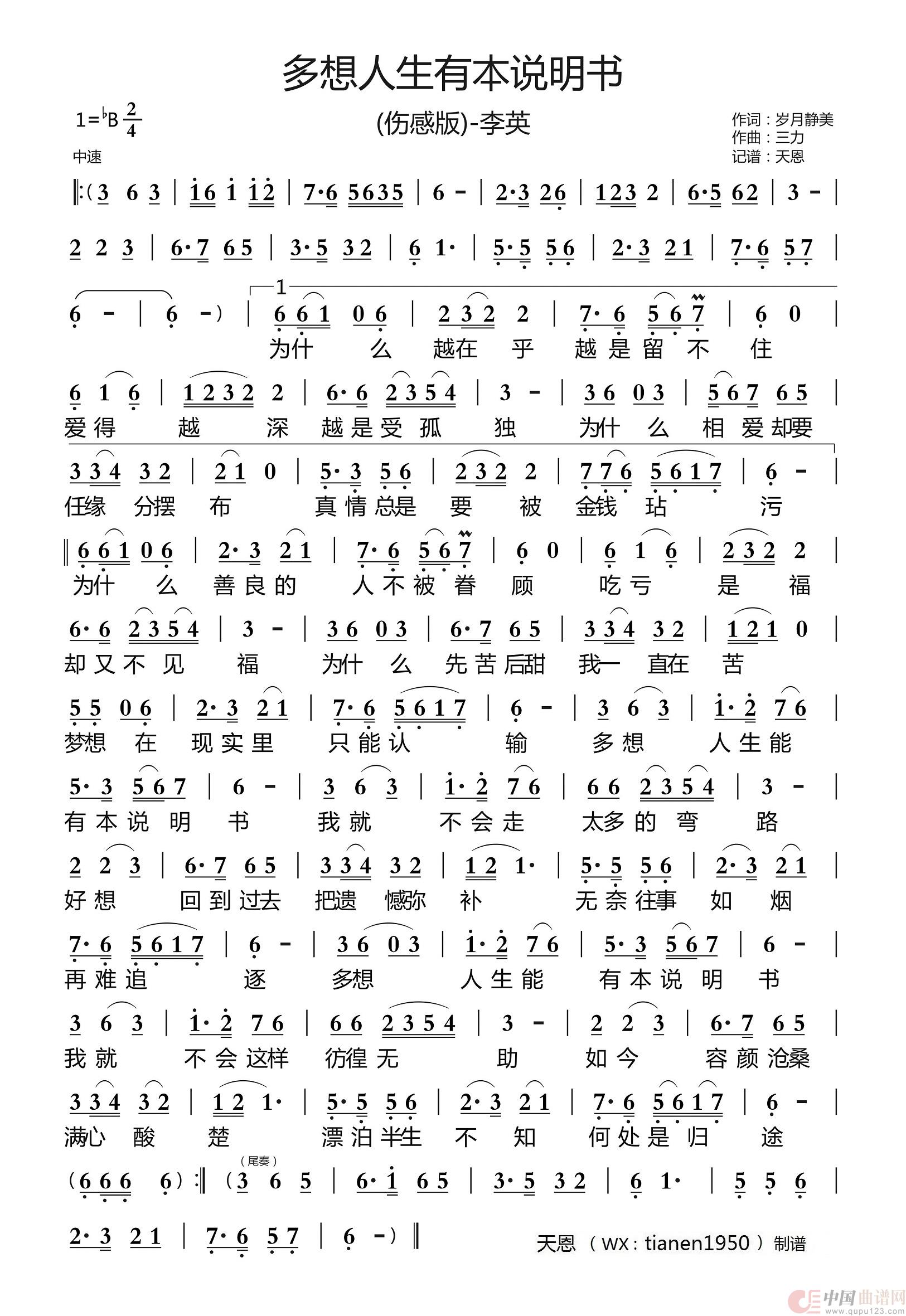 关于《多想人生有本说明书(伤感版)》曲谱的评论