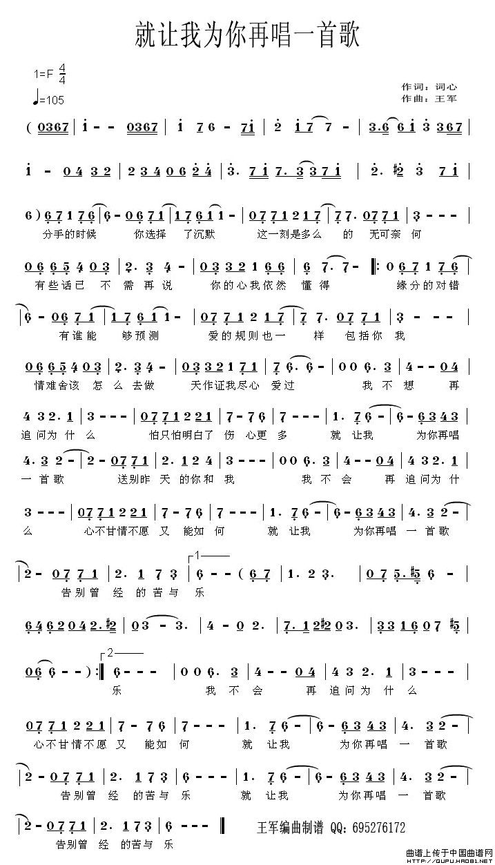 提示:在曲谱图片上单击右键,选择“图片另存为...”即可将曲谱保存到您的电脑中,打印时候可将图片插入到WORD中,调整合适大小打印即可。
