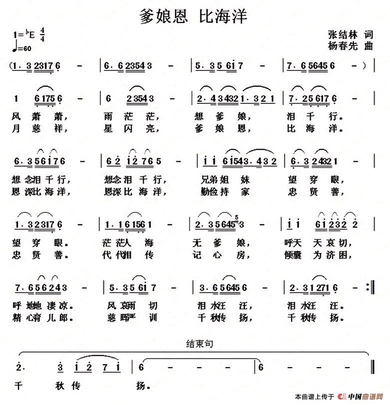 关于《爹娘恩 比海洋》曲谱的评论