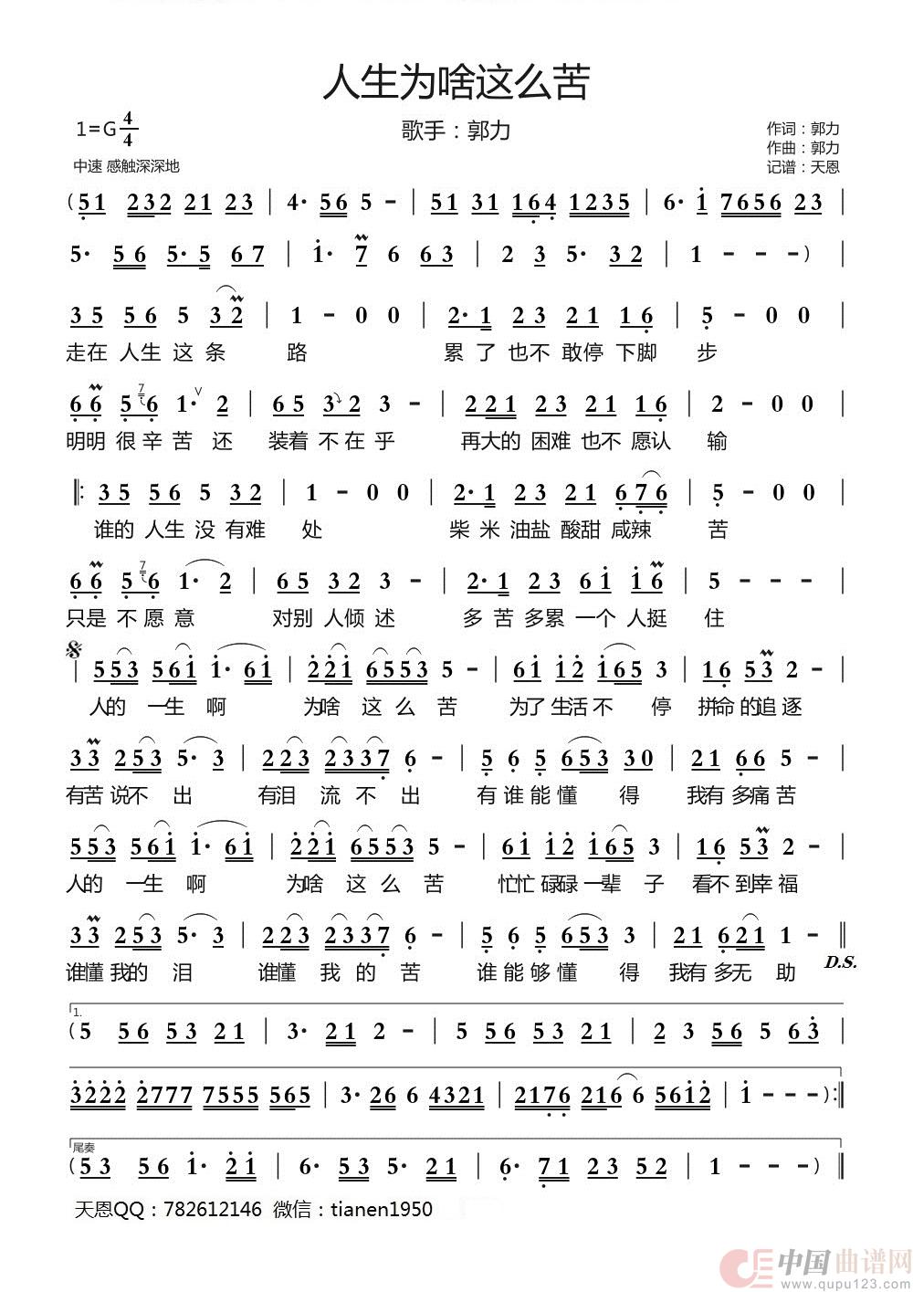 关于《人生为啥这么苦》曲谱的评论