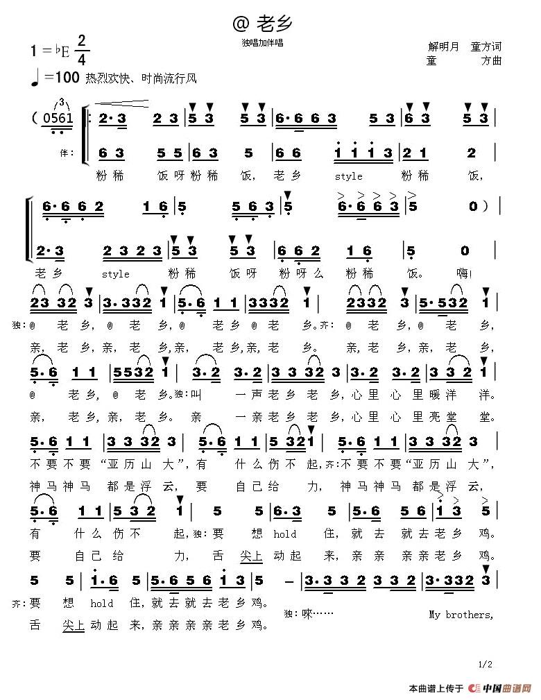 关于《@老乡 》曲谱的评论