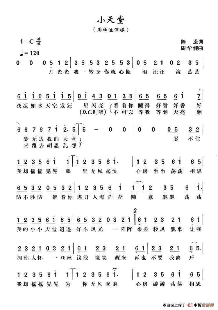 提示:在曲谱图片上单击右键,选择“图片另存为...”即可将曲谱保存到您的电脑中,打印时候可将图片插入到WORD中,调整合适大小打印即可。