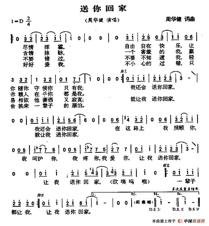 关于《送你回家》曲谱的评论