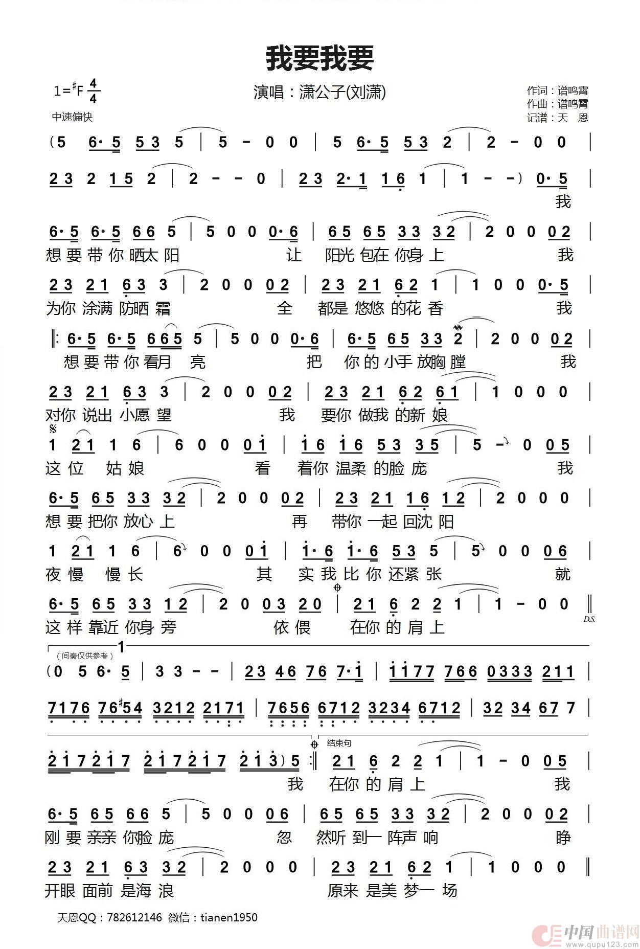 作词:谱鸣霄 作曲:谱鸣霄 演唱(奏):潇公子(刘潇) 来源:谱友天恩上传 上传:天恩