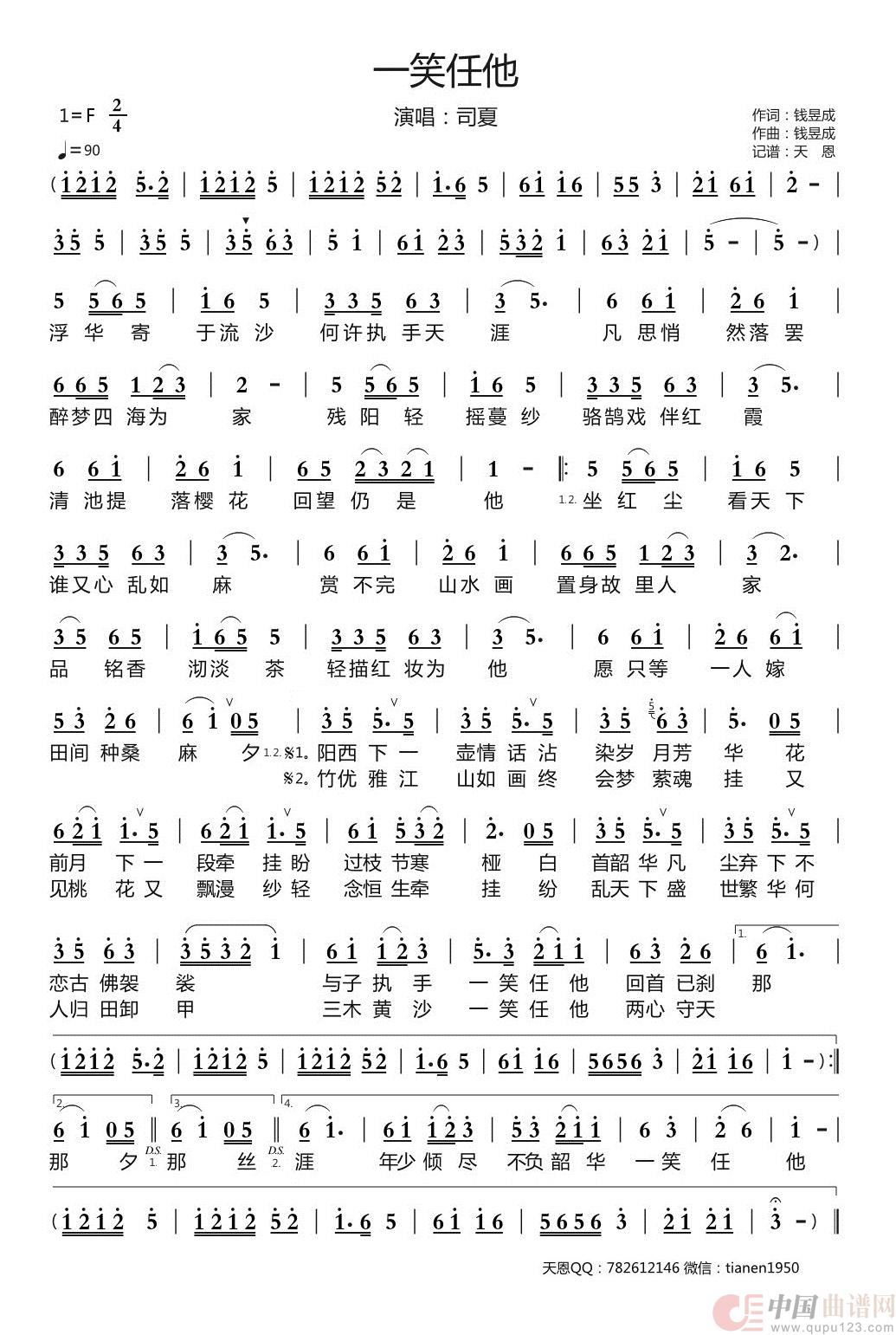 关于《 一笑任他》曲谱的评论