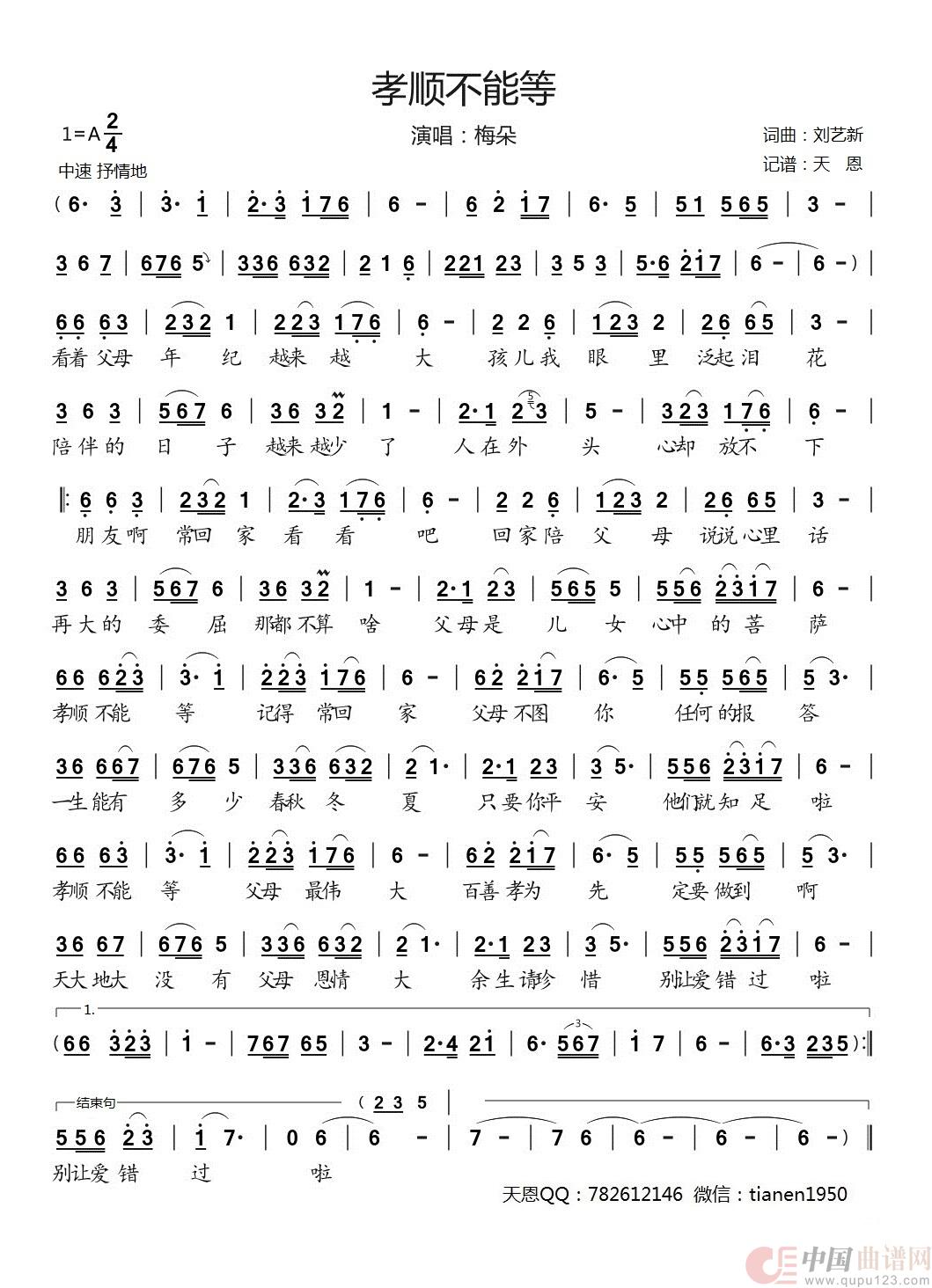 关于《孝顺不能等》曲谱的评论