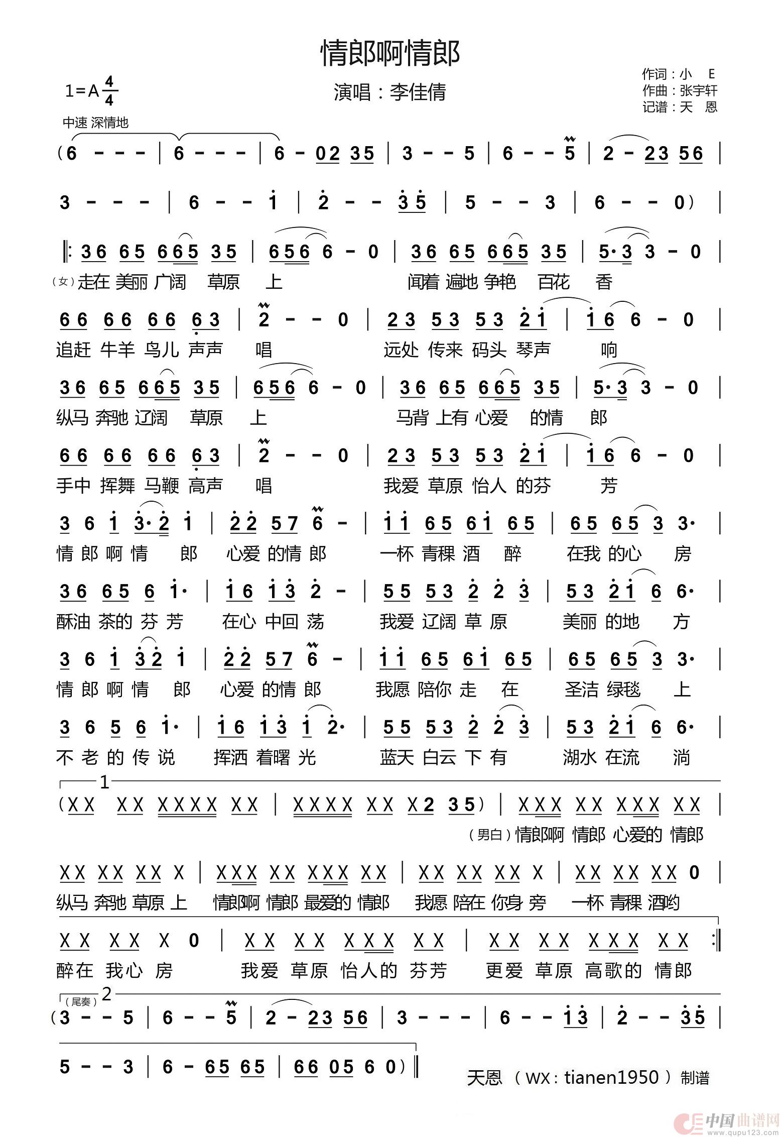 作词:小 E 作曲:张宇轩 演唱(奏):李佳倩 来源:谱友天恩上传 上传:天恩