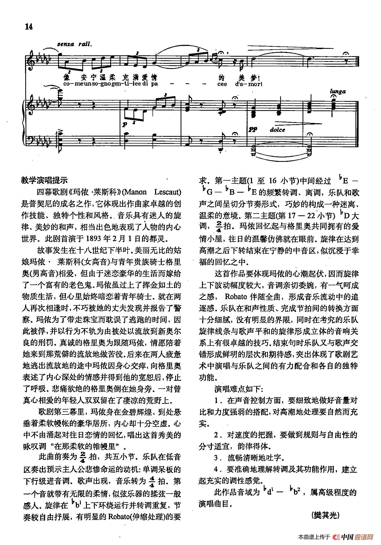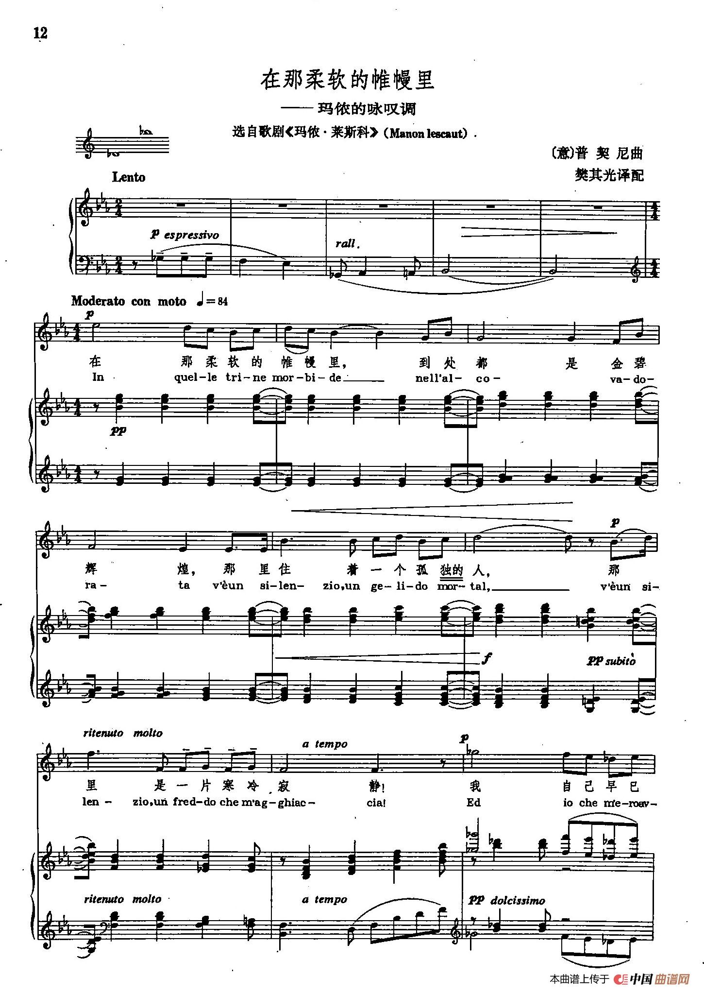 声乐教学曲库2-55[意]在那柔软的帷幔里(正谱) (选自歌剧《玛侬·莱斯科》)