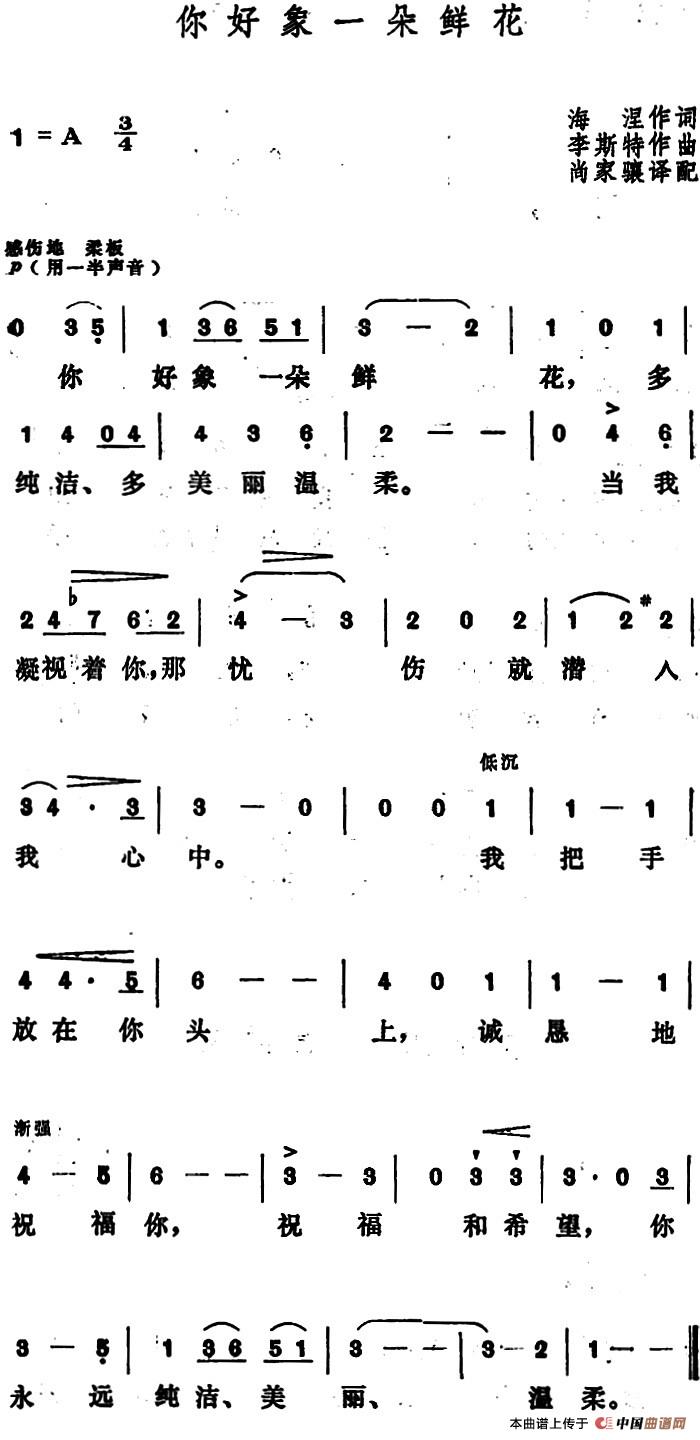 关于《[匈]你好象一朵鲜花 》曲谱的评论