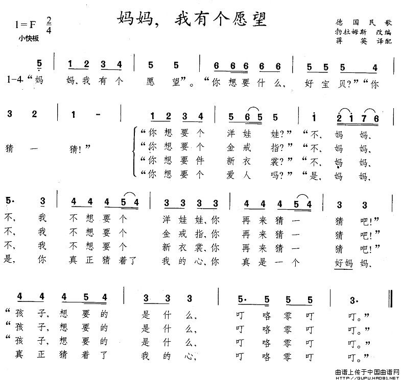 关于《[德]妈妈,我有个愿望》曲谱的评论
