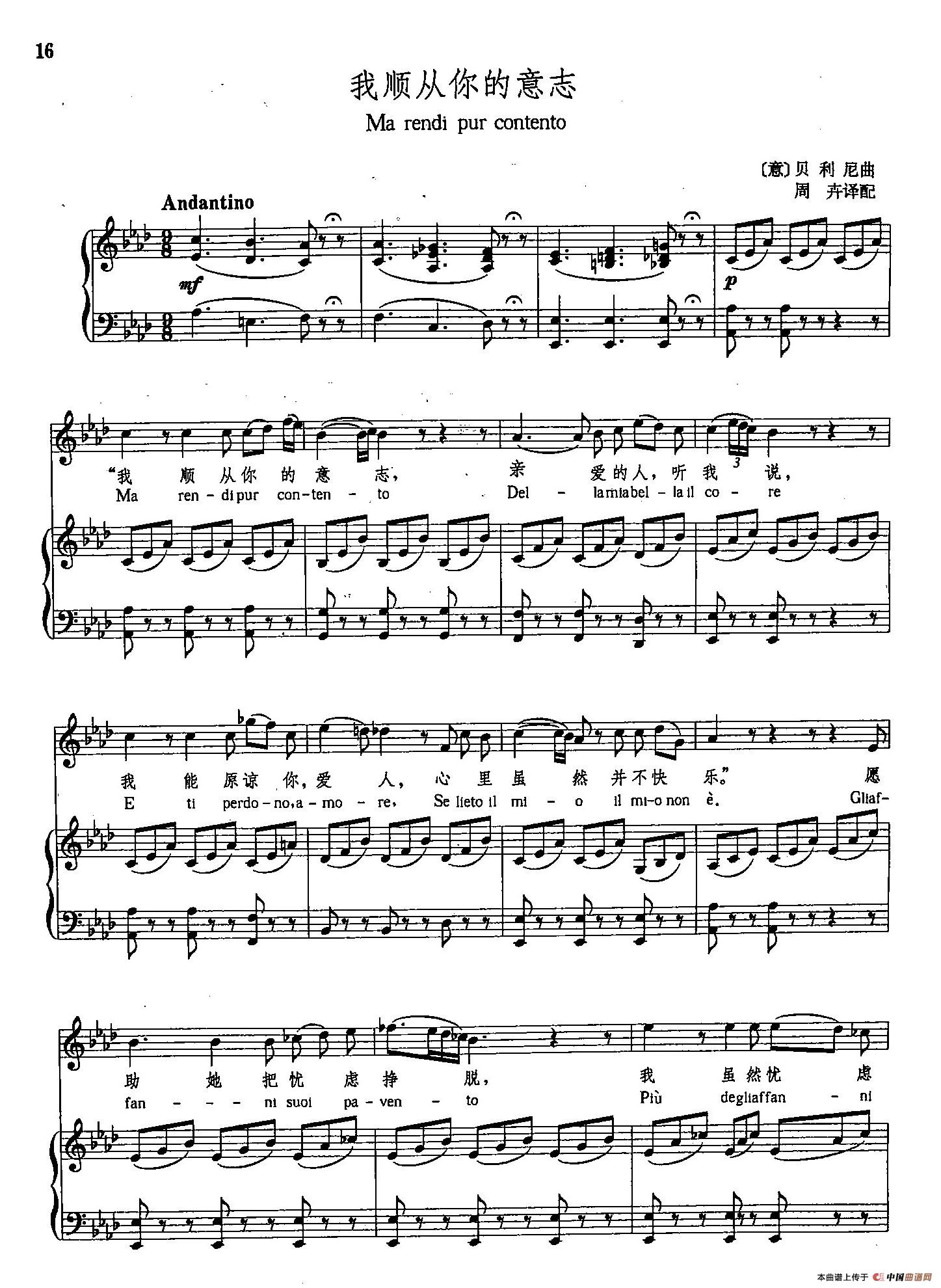 《[意]5我顺从你的意志(正谱)》文本歌词