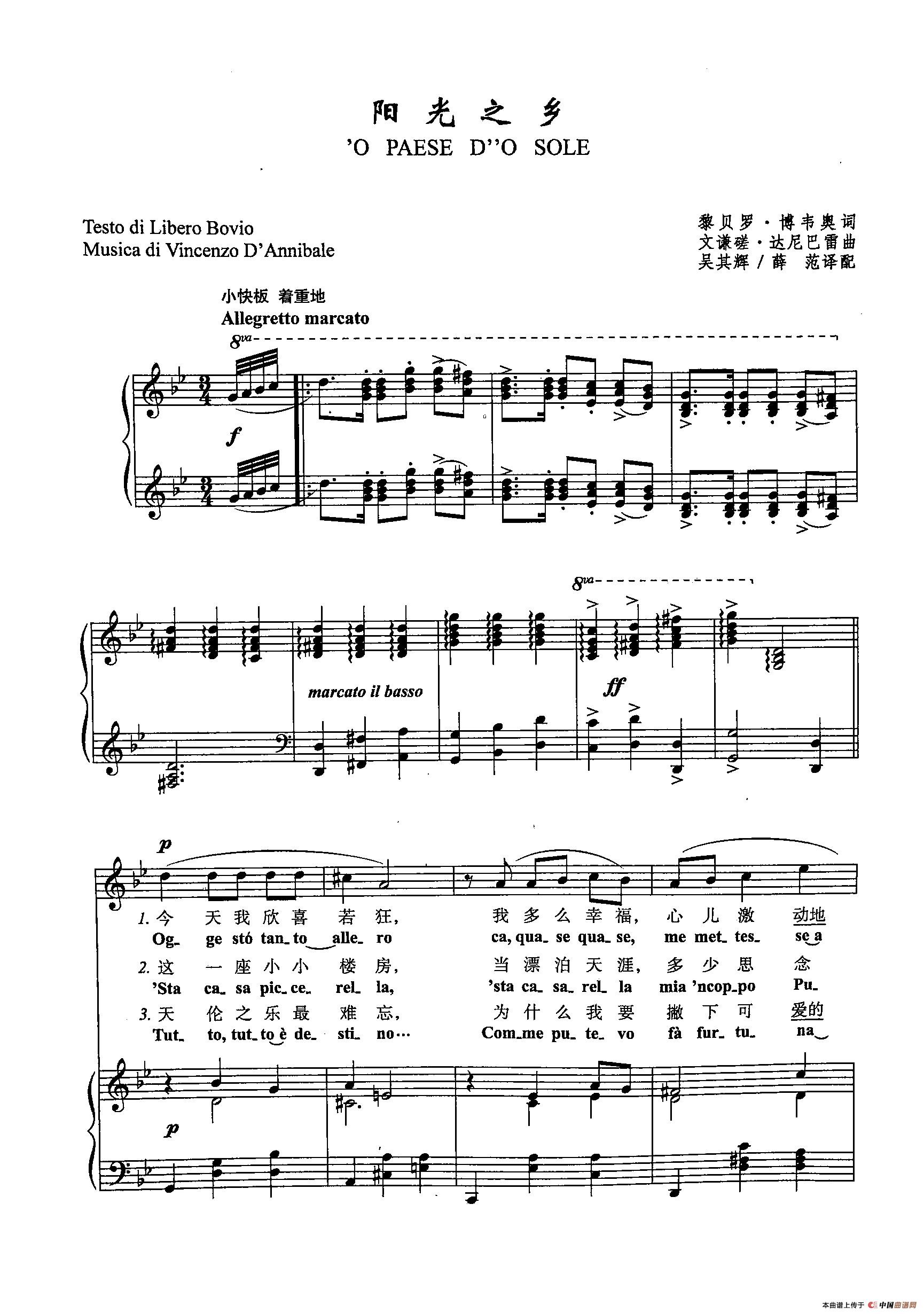 《[意]24阳光之乡(正谱)》文本歌词