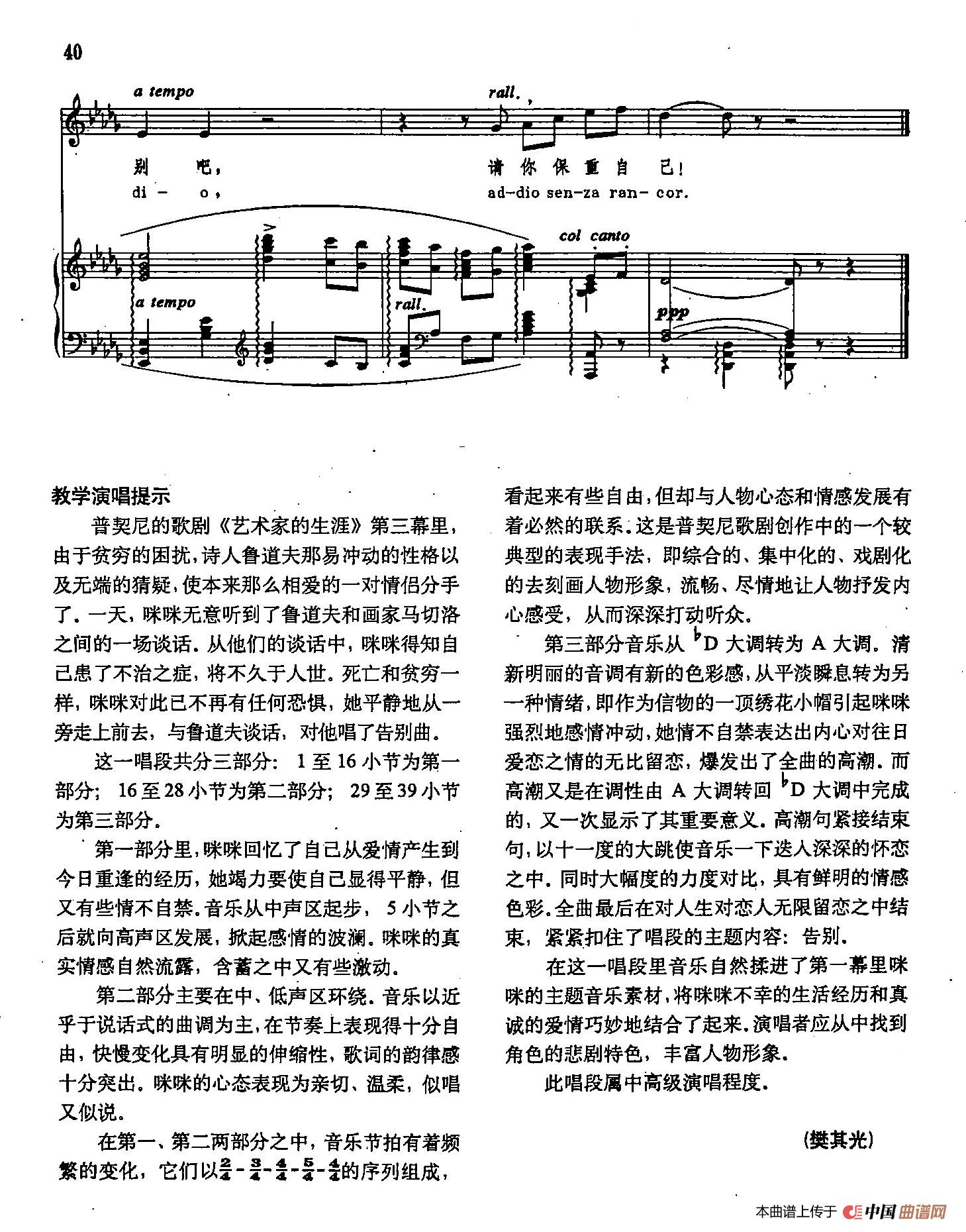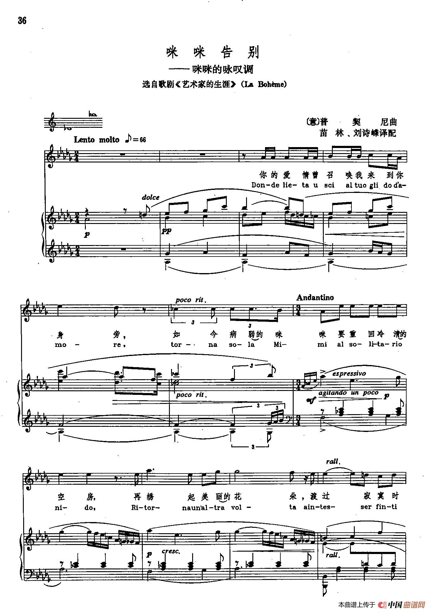 声乐教学曲库2-60[意]咪咪告别(正谱)