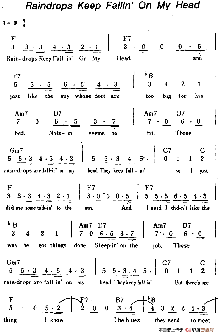 关于《[美]Raindrops Keep Fallin' On My Head》曲谱的评论