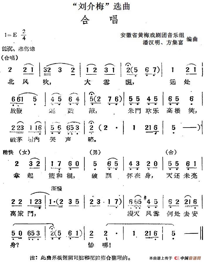 关于《“刘介梅”选曲:合唱》曲谱的评论