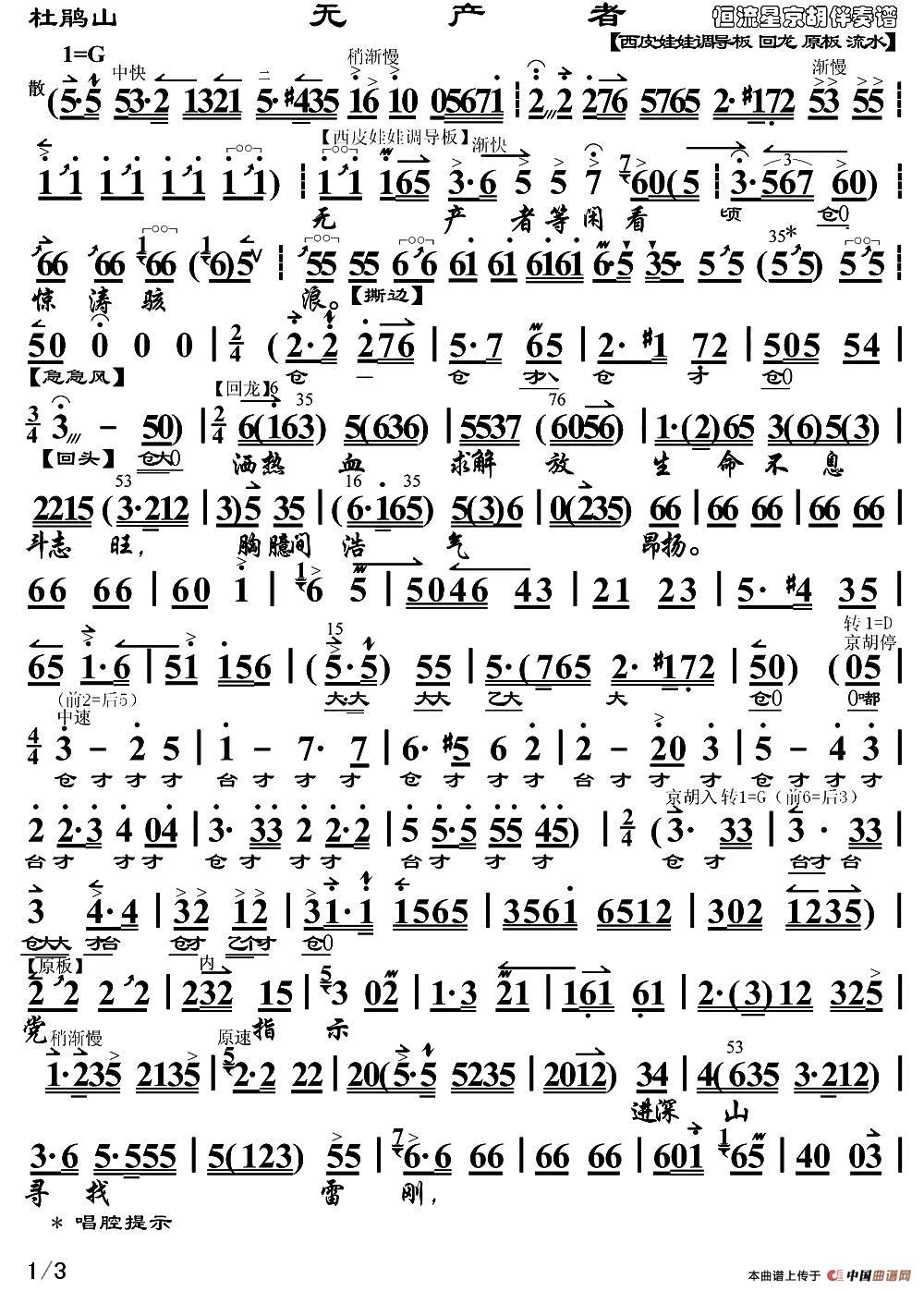 无产者(《杜鹃山》柯湘唱段、琴谱)