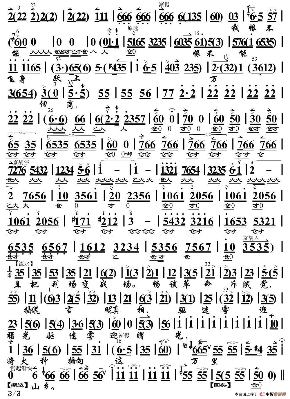 【回龙】 洒热血,求解放, 生命不息斗志旺, 胸臆间豪气昂扬。