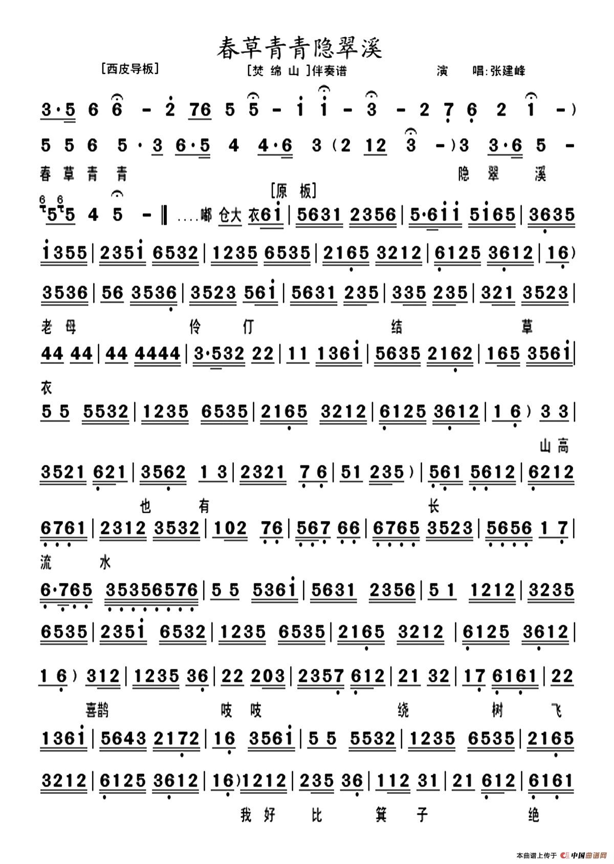 春草青青隐翠溪(《焚绵山》选段、伴奏谱)