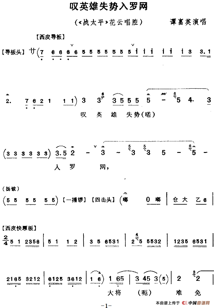 关于《叹英雄失势入罗网》曲谱的评论