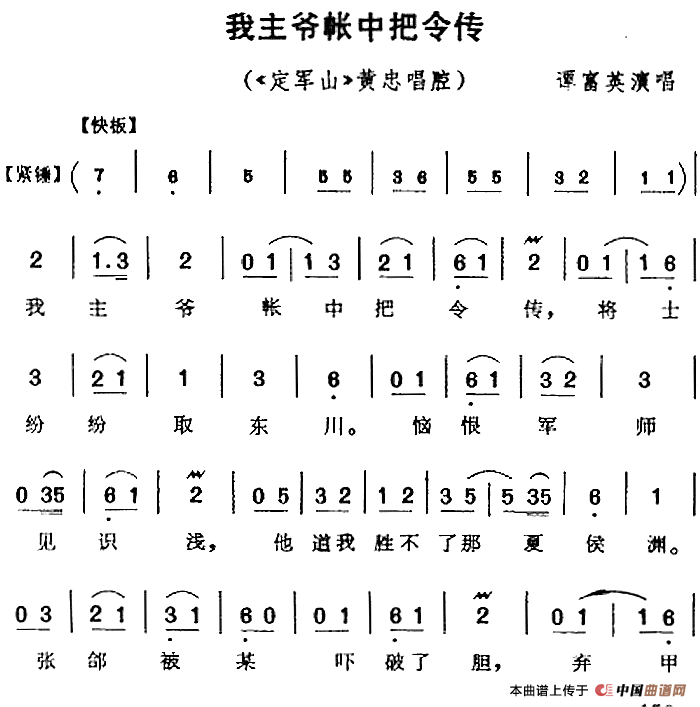 我主爷帐中把令传(《定军山》黄忠唱腔)