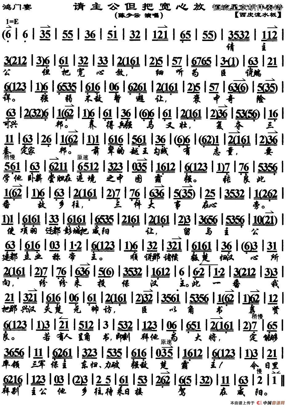 请主公但把宽心放(《鸿门宴》选段、京胡伴奏谱)
