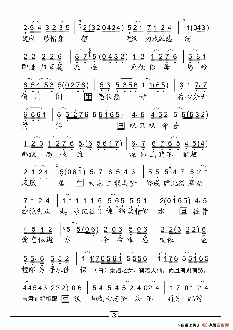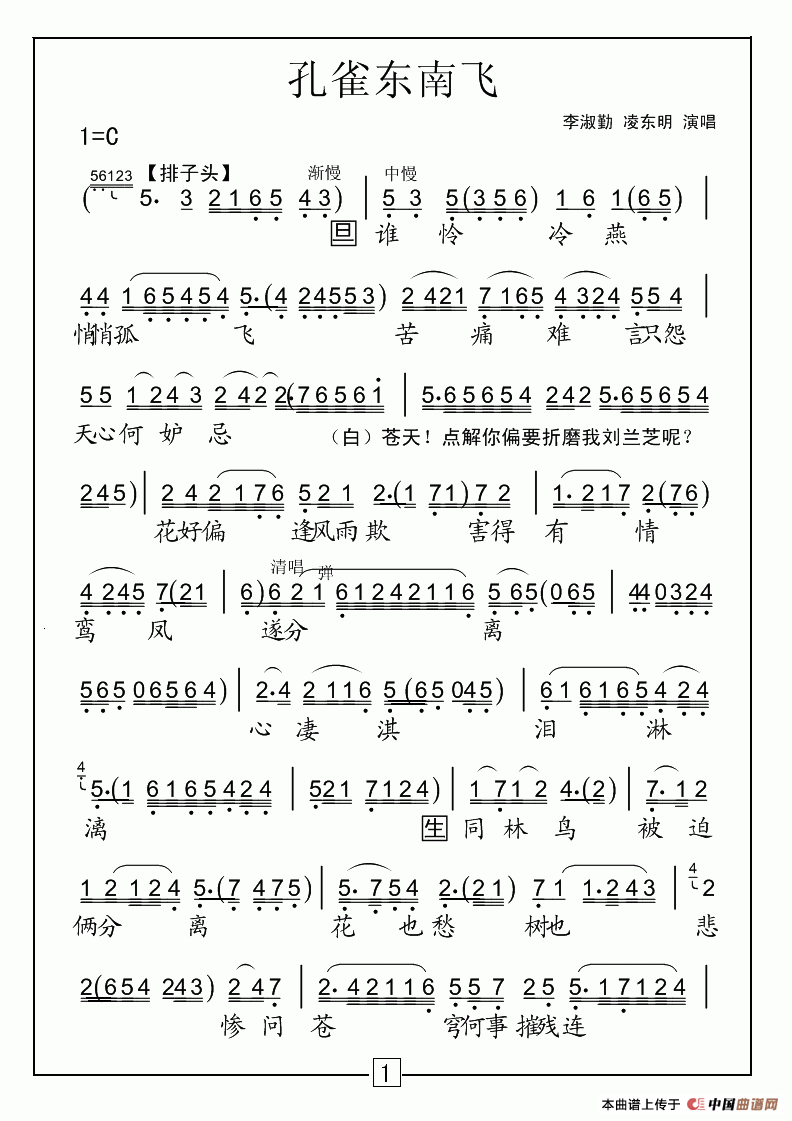 关于《[粤曲]孔雀东南飞》曲谱的评论