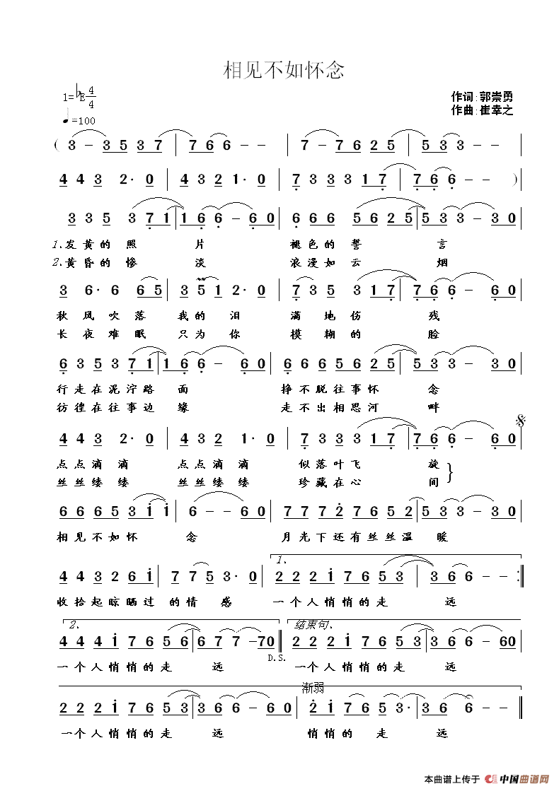 提示:在曲谱图片上单击右键,选择"图片另存为..."即可将曲谱保存到您的电脑中,打印时候可将图片插入到WORD中,调整合适大小打印即可。