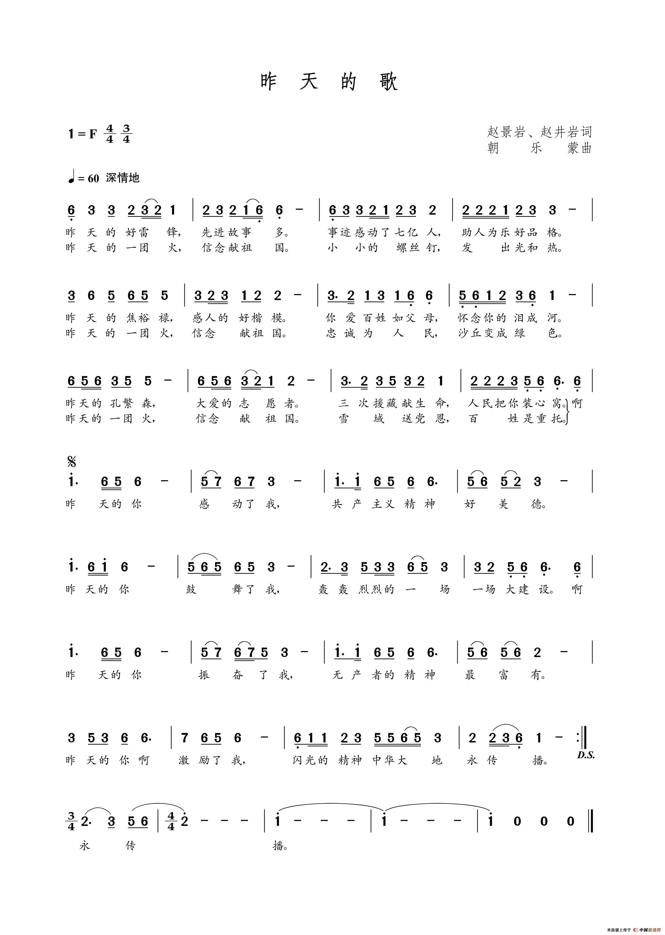 昨天的歌(赵景岩 赵井岩词 朝乐蒙曲)