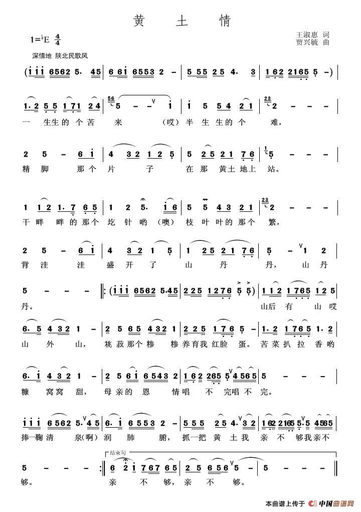 关于《黄土情》曲谱的评论