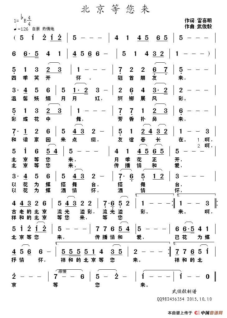 关于《北京等您来》曲谱的评论