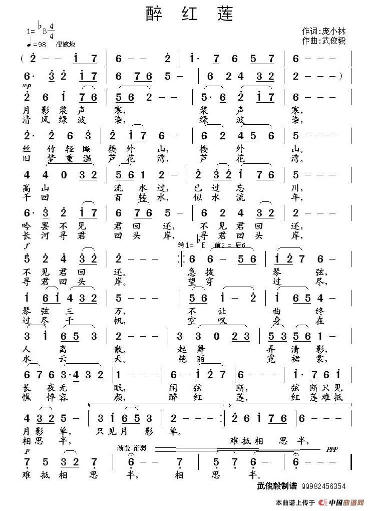 关于《醉红莲》曲谱的评论