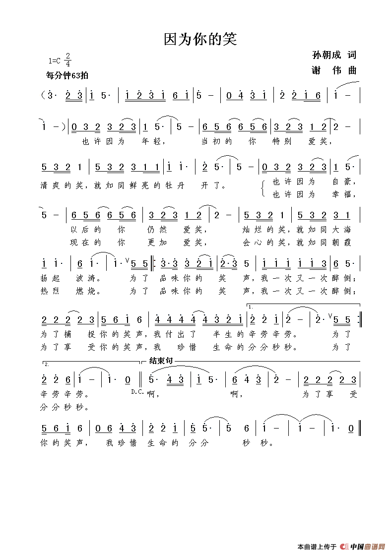 因为你的笑(孙朝成词  谢伟曲)(1)_原文件名:因为你的笑.GIF