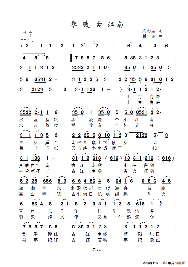 关于《零陵古江南》曲谱的评论