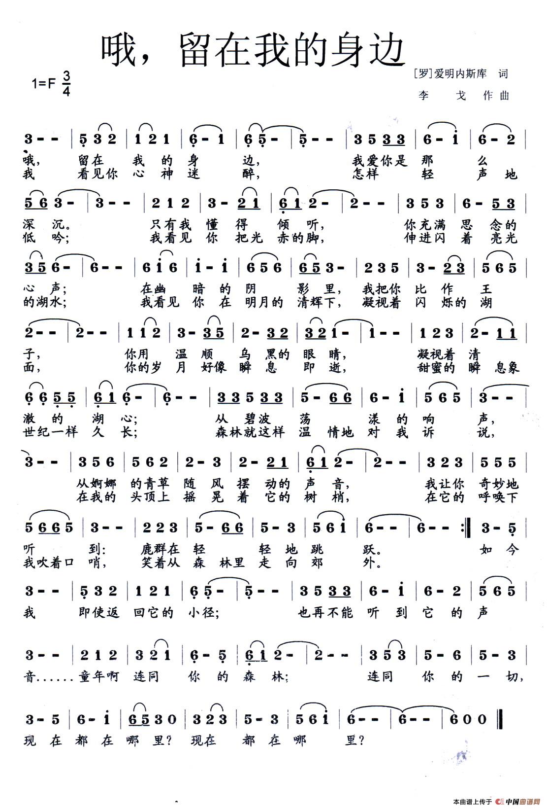 关于《哦,留在我的身边》曲谱的评论