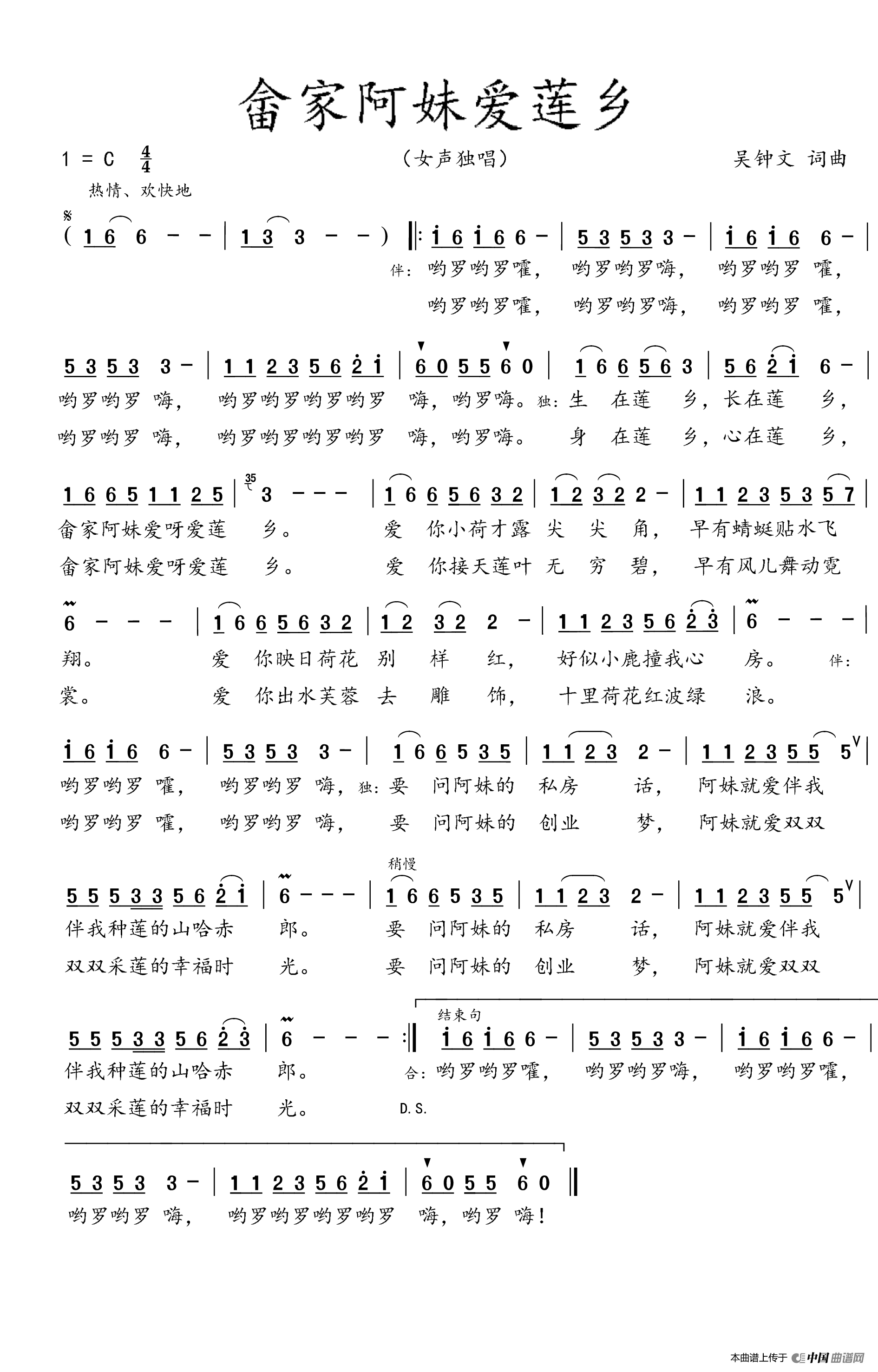 关于《畲家阿妹爱莲乡》曲谱的评论