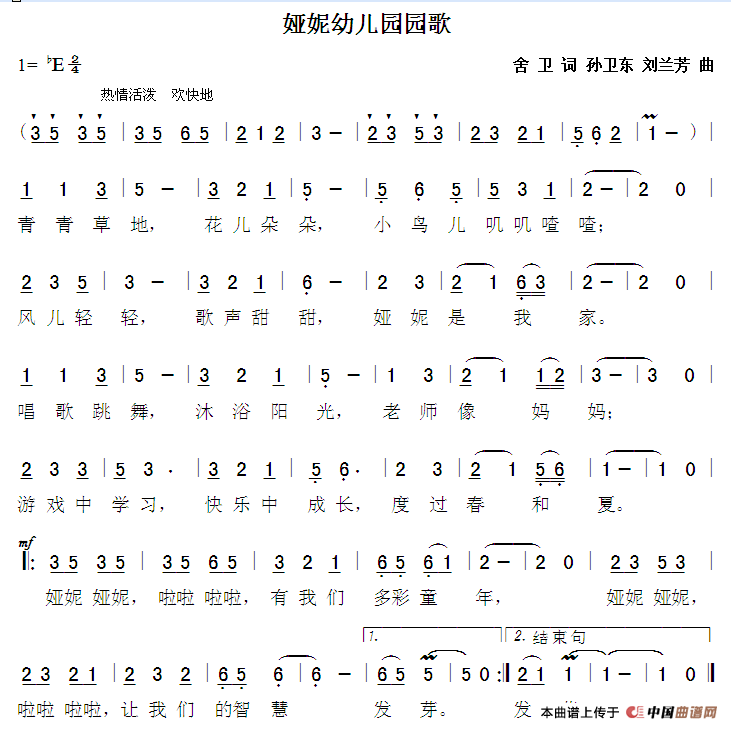 关于《娅妮幼儿园园歌(舍卫词孙卫东刘兰芳曲)》曲谱的评论