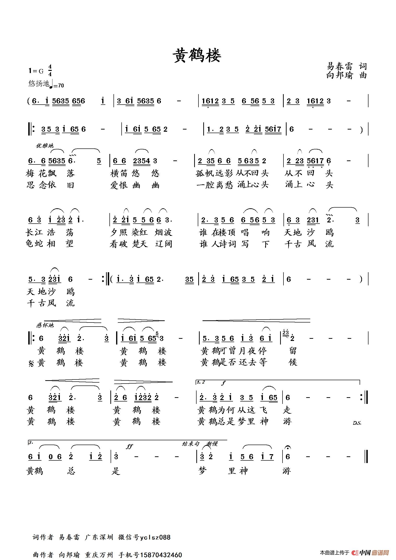 《黄鹤楼》文本歌词