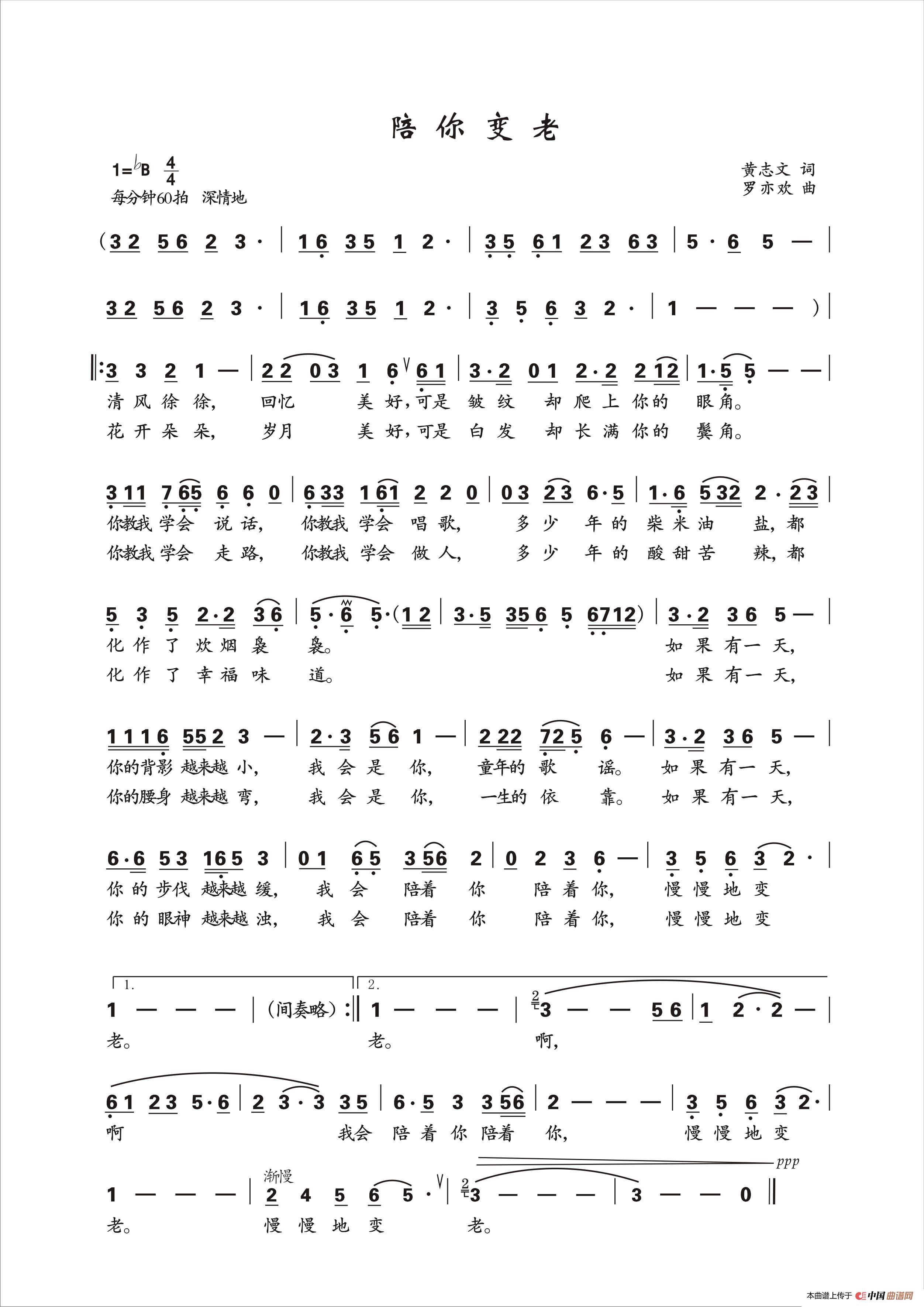 关于《陪你变老》曲谱的评论