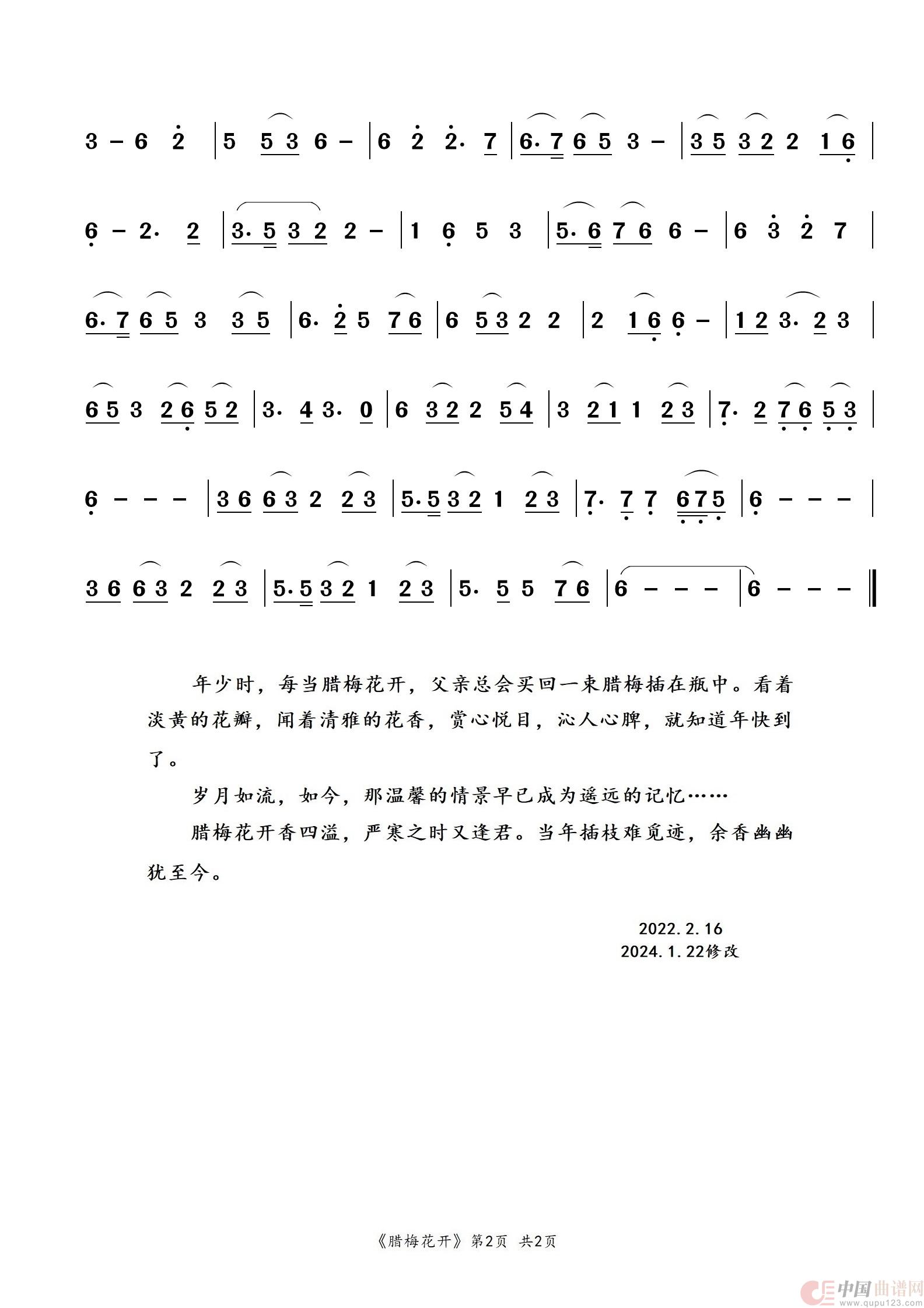 关于《腊梅花开》曲谱的评论