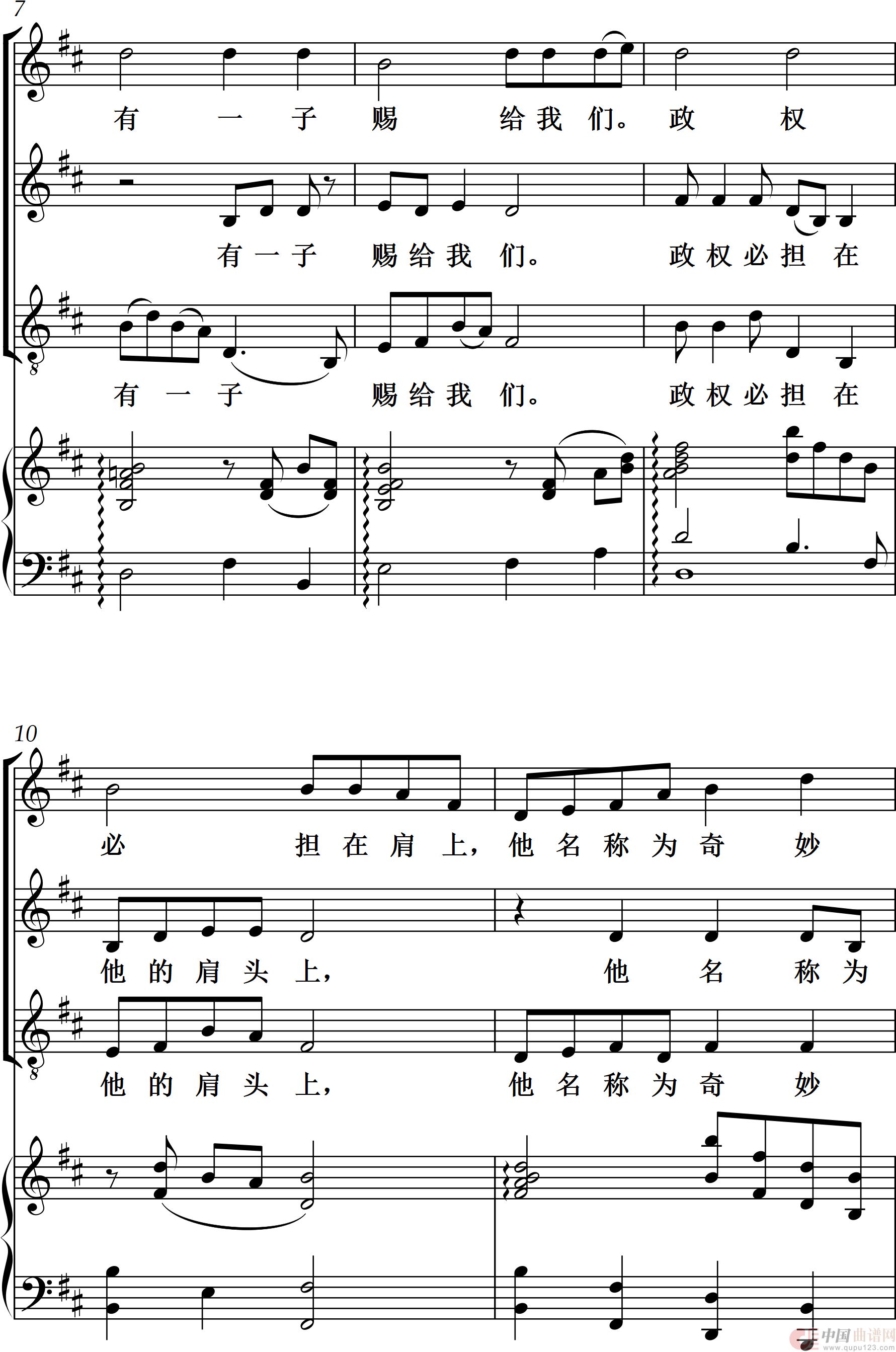 关于《有一个婴孩为我们而生》曲谱的评论