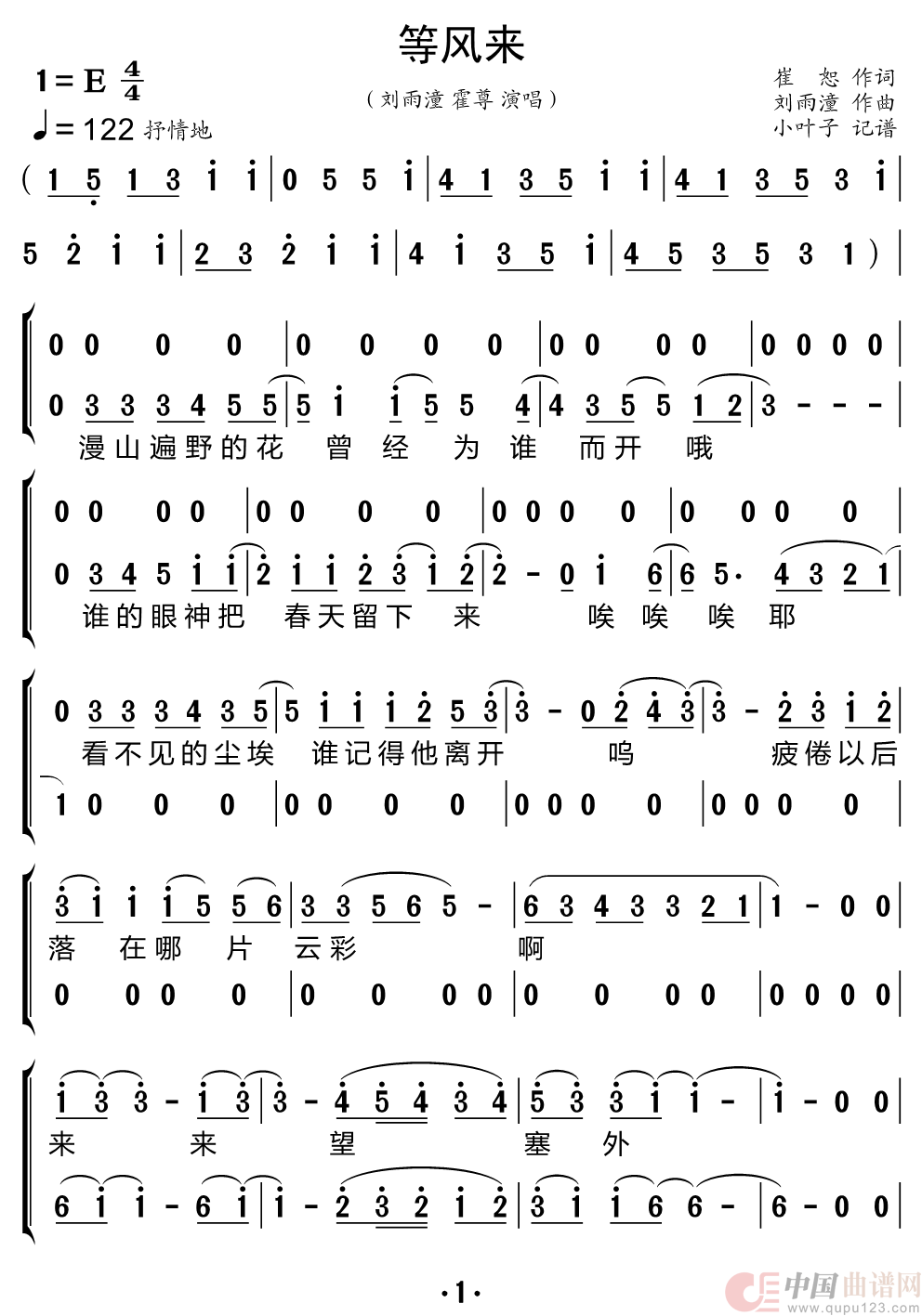 终于做出了二重唱的歌谱,可能错误不少,请斧正哈。