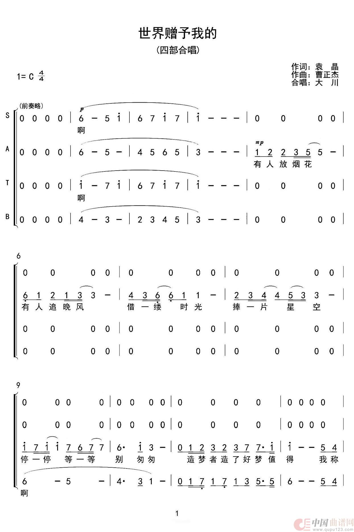 世界赠予我的(大川编合唱)(四声部合唱简谱)
