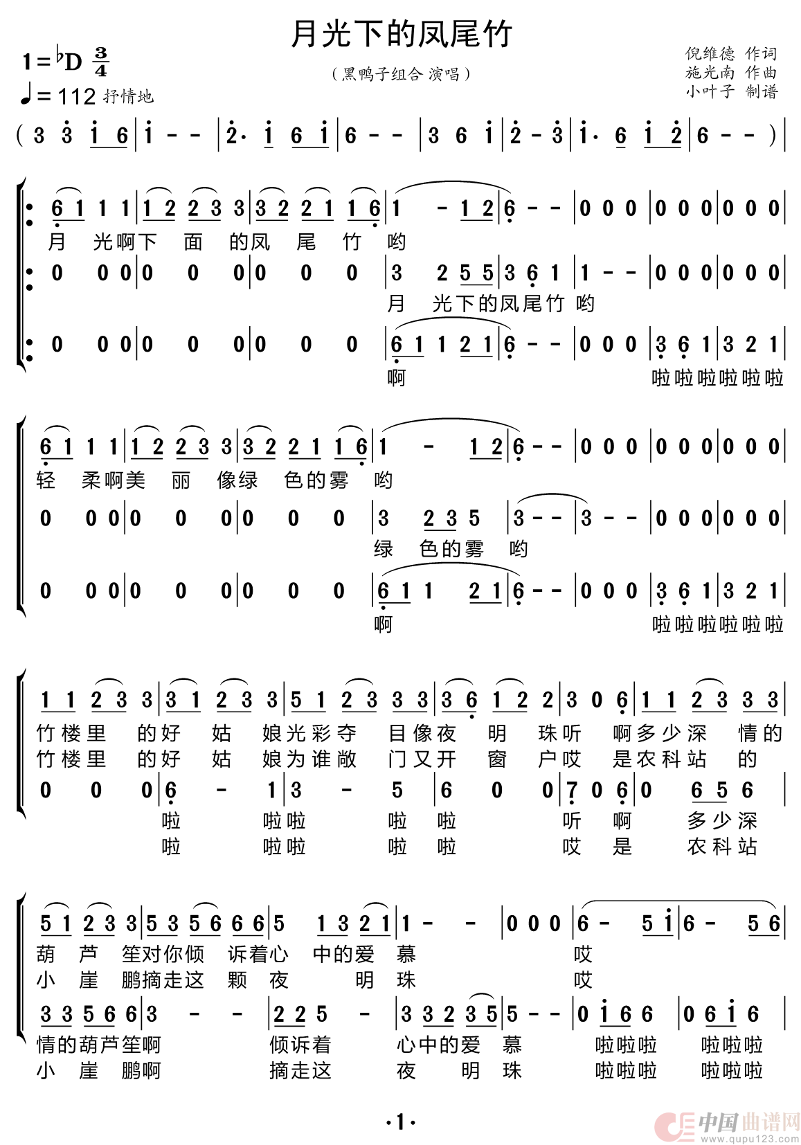 关于《月光下的凤尾竹(版本二)》曲谱的评论