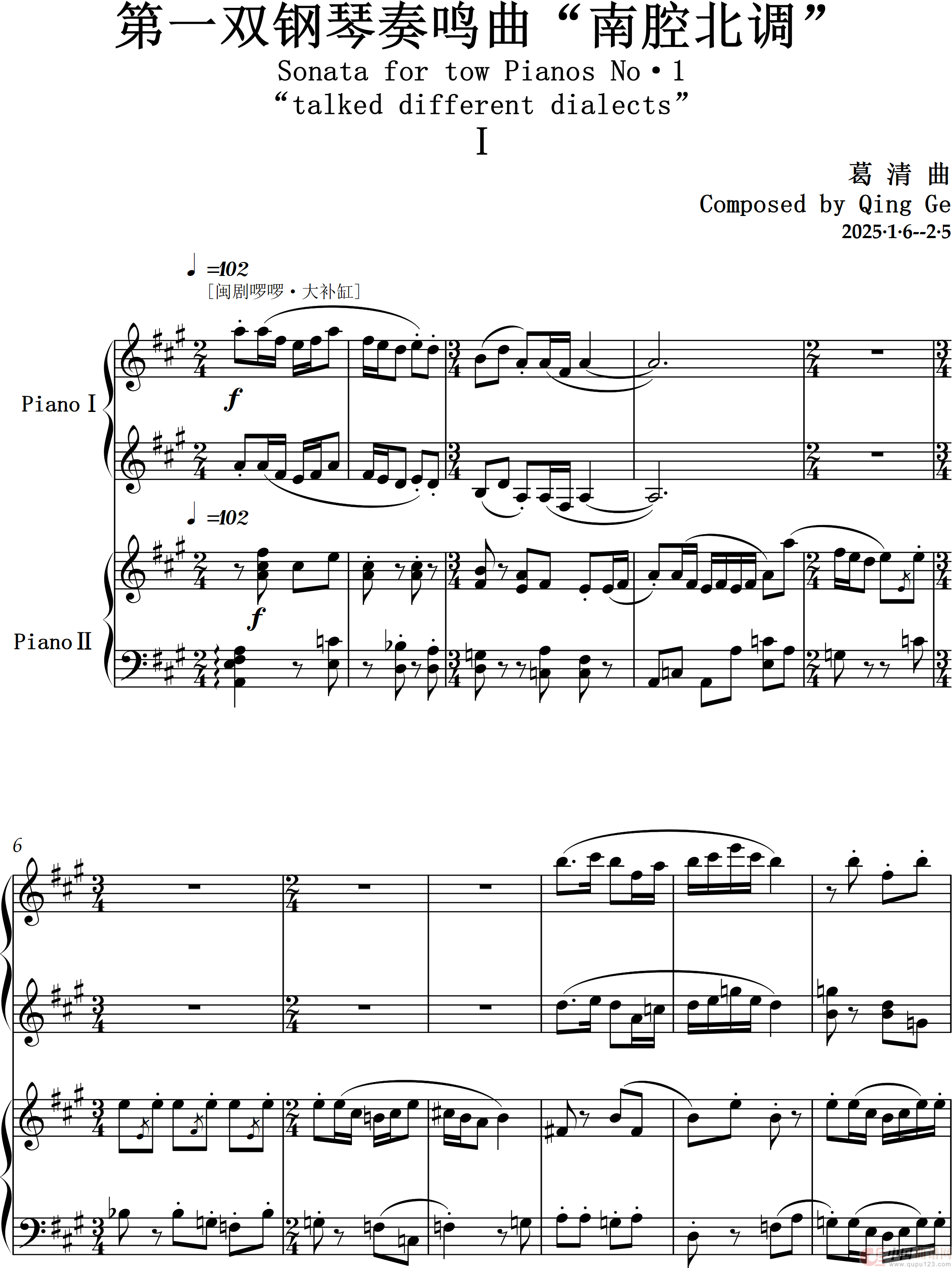 第一双钢琴奏鸣曲“南腔北调”第一、第二乐章(Sonata for tow Pianos No·1 )