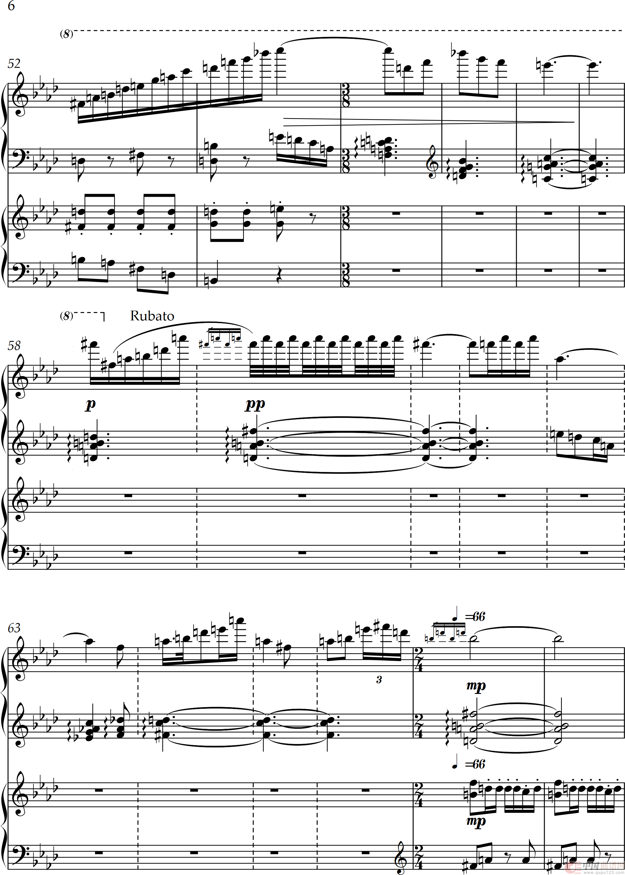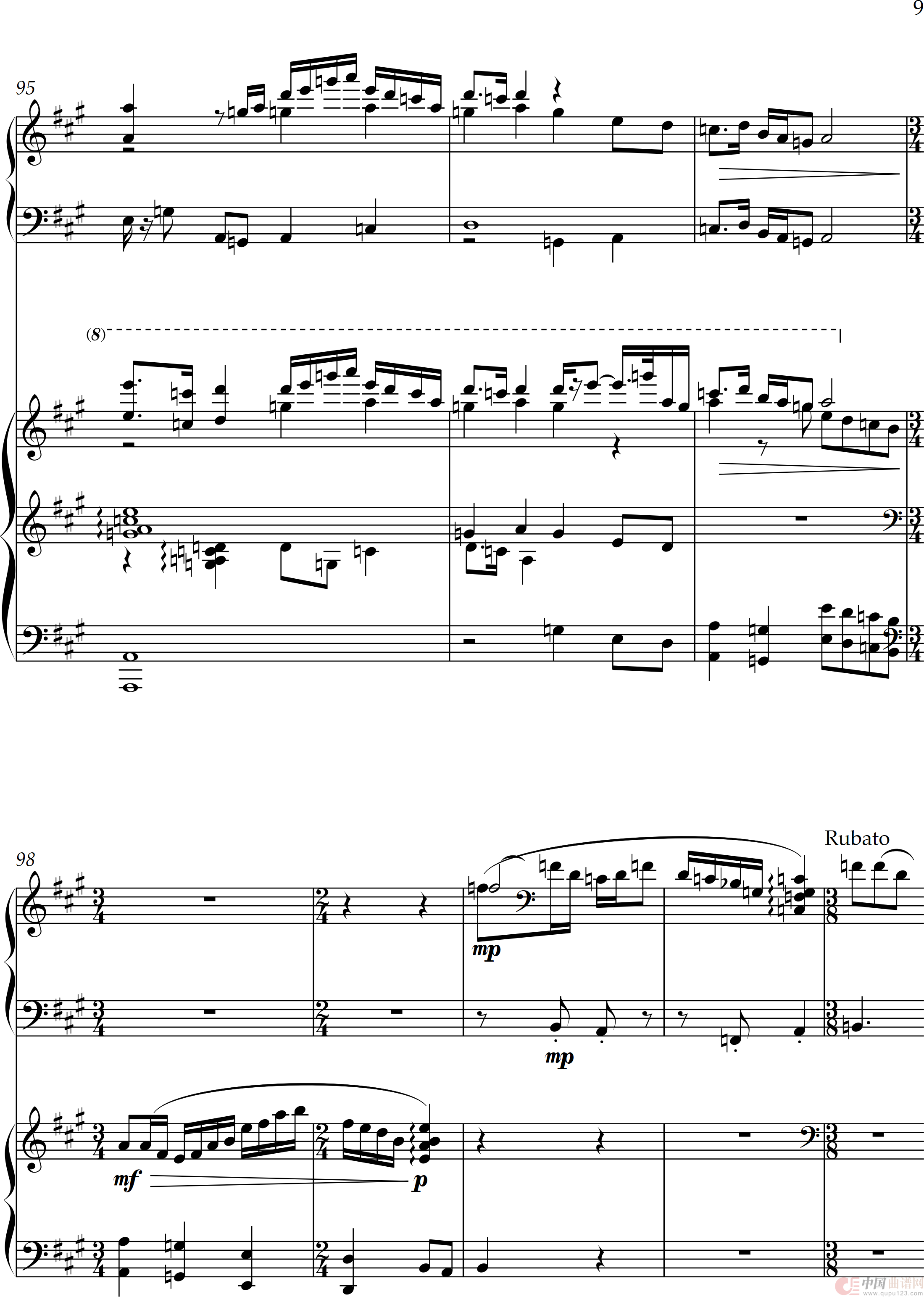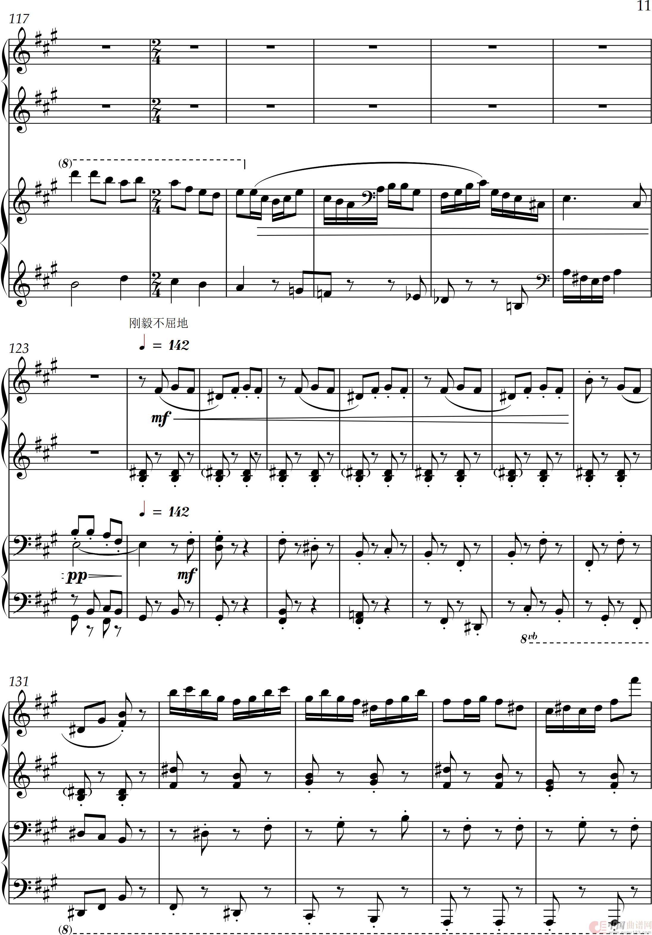 第四乐章《骏马奔腾》——自由曲式。以南音曲牌《八骏马》为基调,表现了坚忍不拔的、敢拼会赢的闽南精神,也是作者刚柔相济内心的表达。(由于文件过大,此文件为第一、第二乐章)