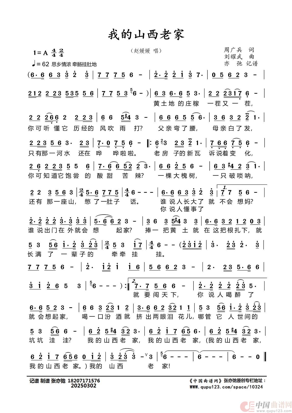 关于《我的山西老家(亦弛记谱)》曲谱的评论