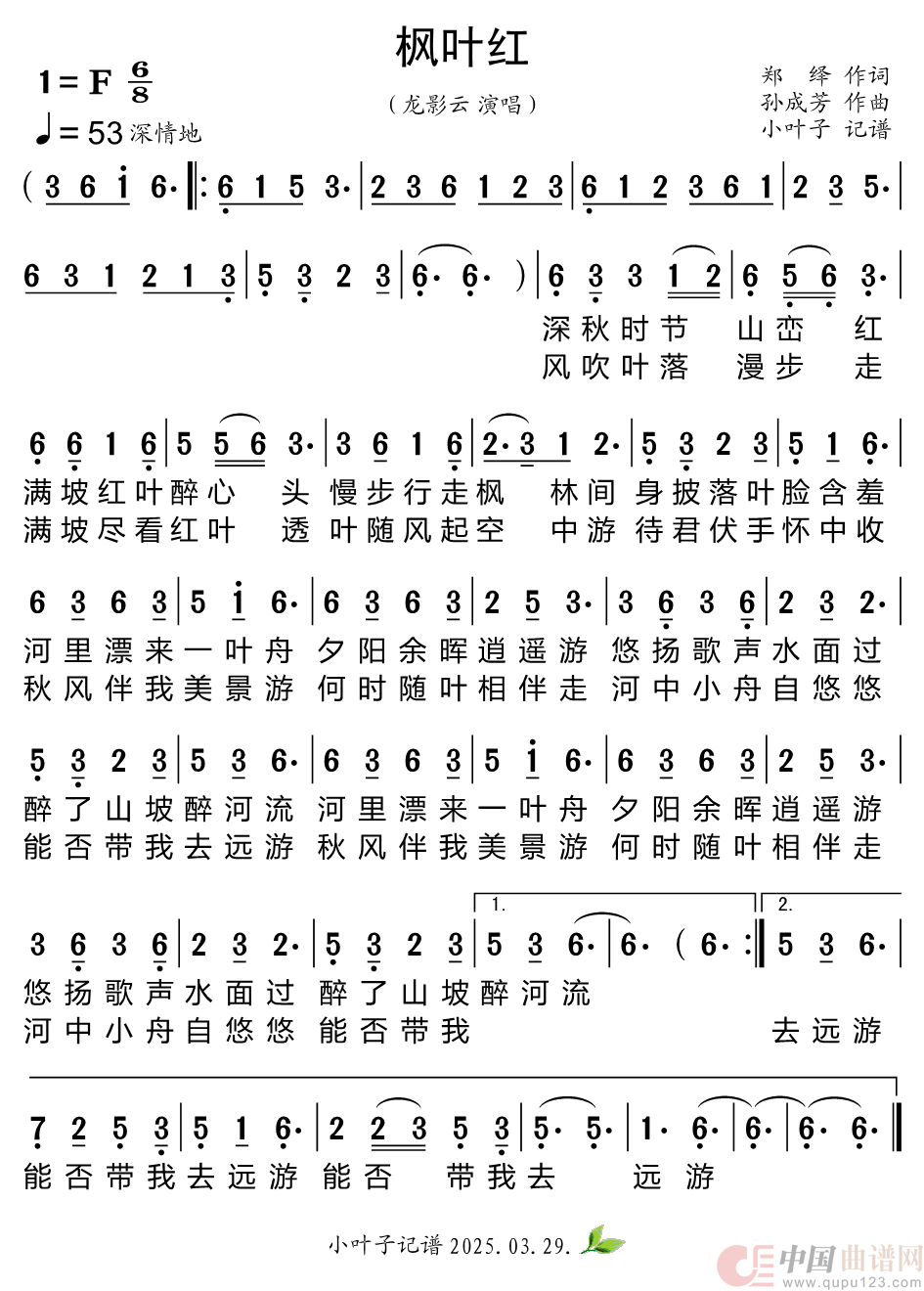 关于《枫叶红》曲谱的评论